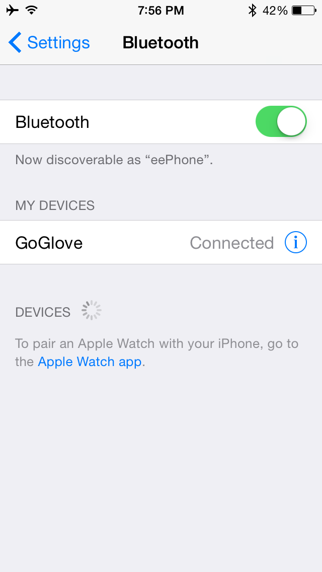 - After a few seconds, GoGlove will appear as "Connected" in your settings menu